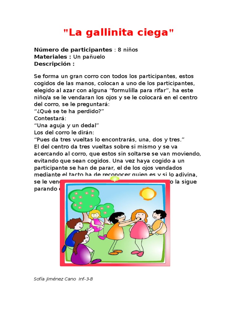 Elaborar Un Compendio Del Juego De La Gallinita Ciega / Gallina Ciega Koppert : Una aguja y un dedal… la pequeña no dio tres vueltas sobre sí misma sino algunas más, esa era realmente la diversión de aquel juego, la borrachera de la gallinita… su hermano el día antes había dado 12 vueltas y ella quería superarlo.. Un jugador hace de gallina ciega. Edad recomendada / nivel de dificultad mayores de 5 años. 'gallinita ciega que se te ha perdido una aguja y un dedal date la vuelta y. El juego no tiene máximo de jugadores. El bote de esta tarde es un viaje al caribe.